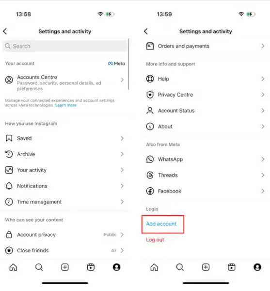 چطور بین اکانتهای اینستاگرام جابهجا شوم؟