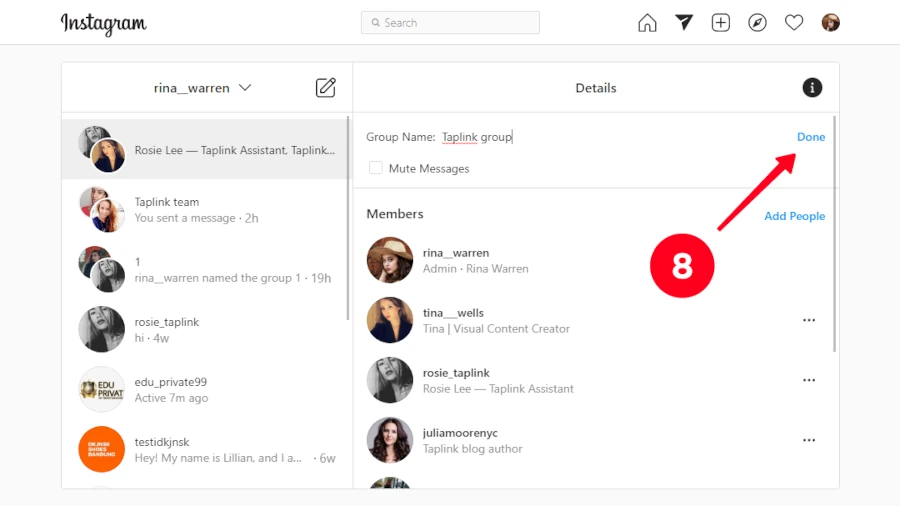 تمام شد! گروه چت اینستاگرامی شما ساخته شد. حالا دیگر نیازی نیست به هر کاربر بهصورت جداگانه پیام بفرستید.